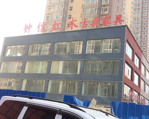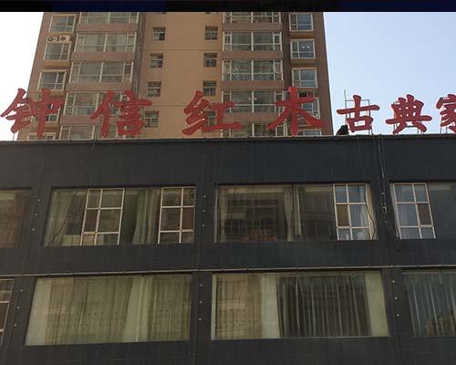 鐘信紅木古典家具體驗館樓頂大字的制作。
